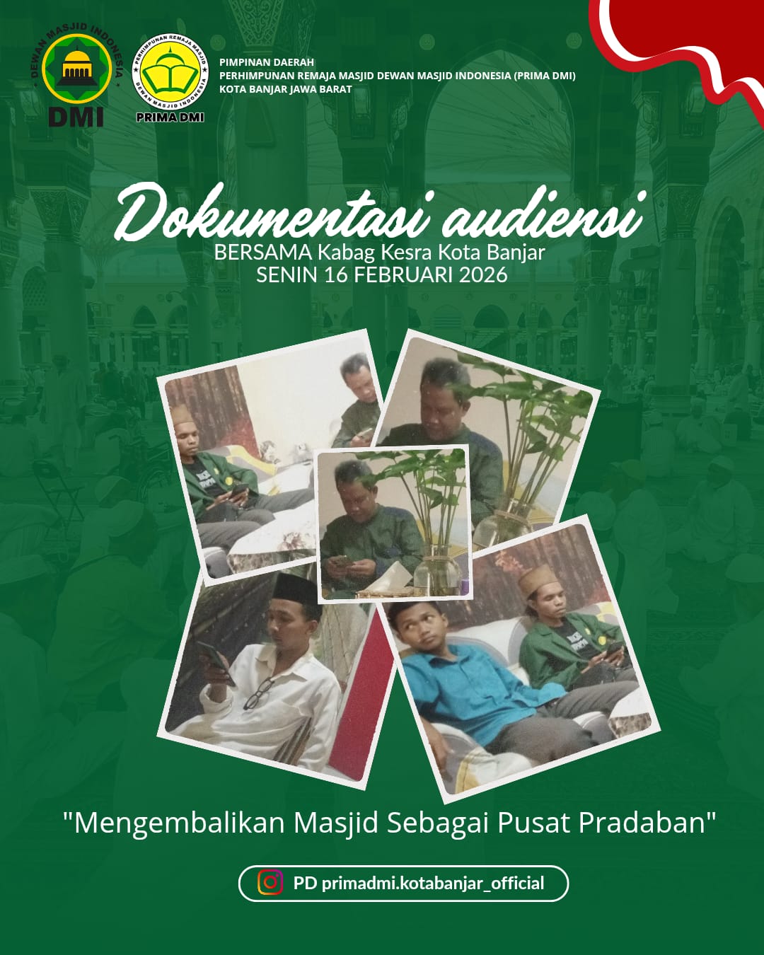 FaktaBatamNews.com, Banjar-Pengurus Daerah Perhimpunan Remaja Masjid Dewan Masjid Indonesia (PD PRIMA DMI) Kota Banjar melakukan kunjungan audiensi ke kantor Bagian Kesejahteraan Rakyat (Kesra) Setda Kota Banjar pada Senin (16/02/2026).