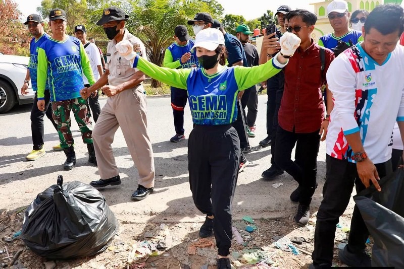 Wakil Wali Kota Batam, Li Claudia Chandra ikut turun langsung mengumpulkan sampah di kawasan Sagulung.