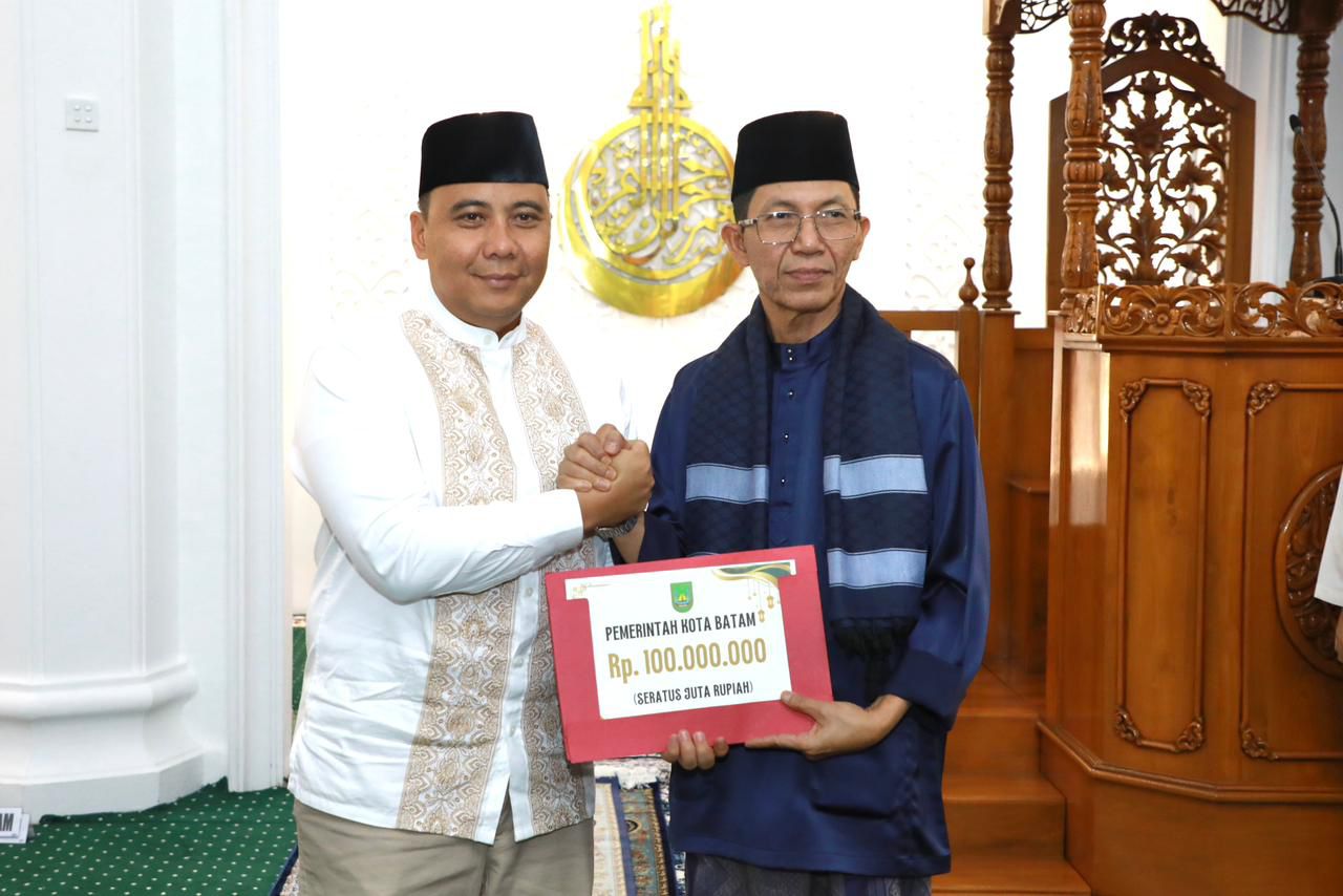 FaktaBatamNews.com, Batam-Wali Kota Batam, Amsakar Achmad, menyerahkan bantuan untuk masjid serta mengajak masyarakat memanfaatkan sisa Ramadan untuk meningkatkan ibadah dan meraih keberkahan malam Lailatulaadar.