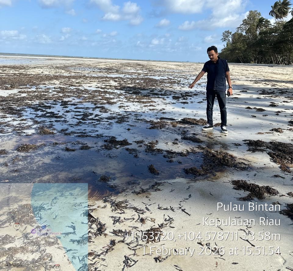 FaktaBatamNews.com – Bintan – Pesisir Pantai Trikora kembali tercemar limbah minyak hitam (sludge oil). Tumpahan limbah hidrokarbon pekat ditemukan menghampar di kawasan Mutiara Beach Resort, Jalan Trikora Kilometer 55, Desa Malang Rapat, Kecamatan Gunung Kijang, Kabupaten Bintan, Kepulauan Riau, Minggu (1/2/2026). Kejadian ini menambah panjang catatan pencemaran berulang di perairan Bintan yang hingga kini belum pernah dituntaskan secara hukum.