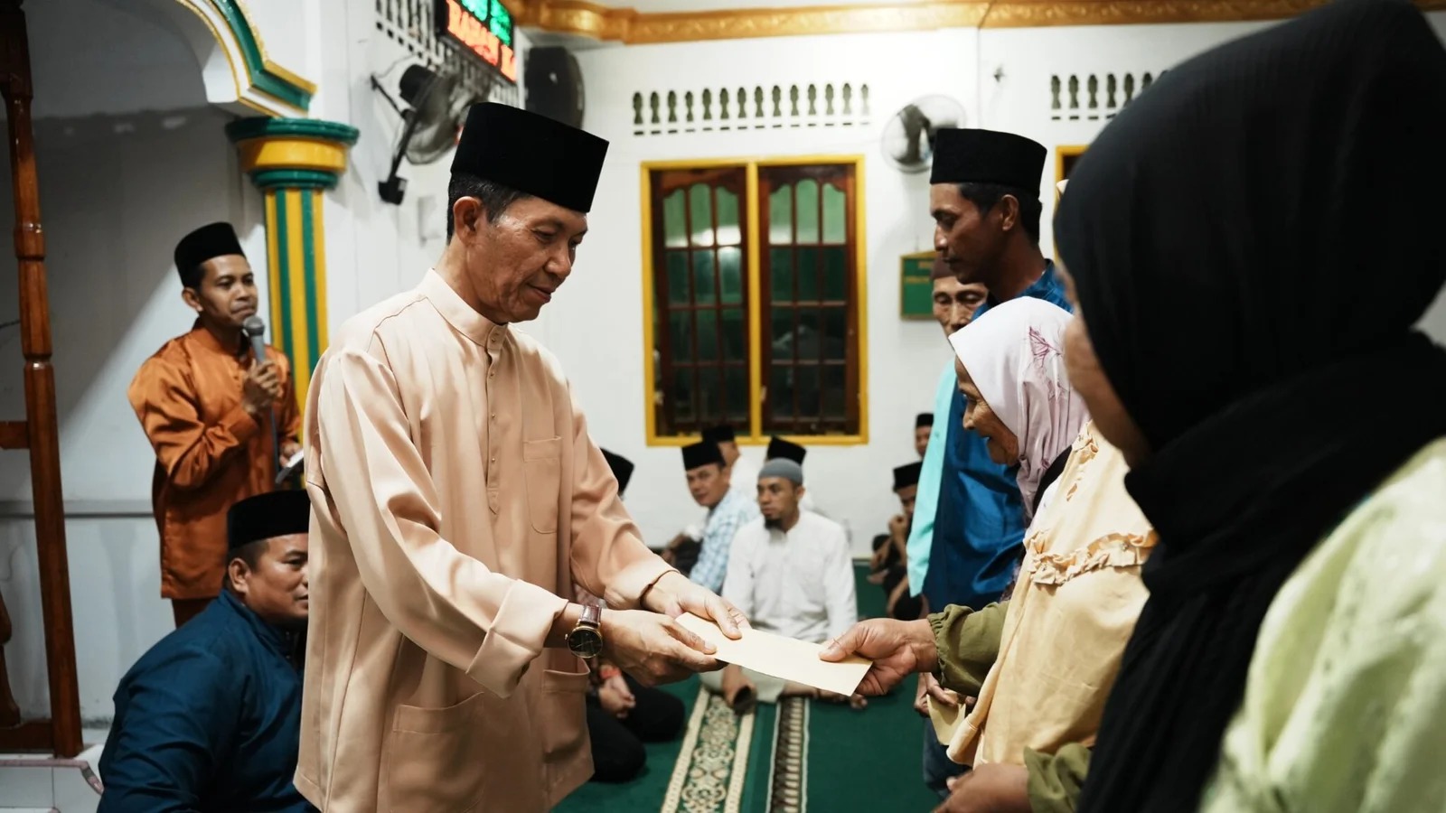 Selain berbuka puasa serta melaksanakan ibadah isya dan tarawih berjemaah, Amsakar juga menyerahkan bantuan sosial untuk Masjid Al – Hidayah.